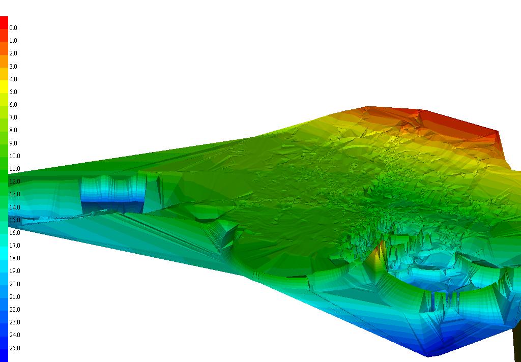 Data is gathered by the boat's pc board and transmitted via wireless LAN in packets at ---- per second back to the operator and his pc. Surface models below were created from data files collected by the Coden Survey Boat from various target sites. The model samples below were generated by the 3 different applications listed.