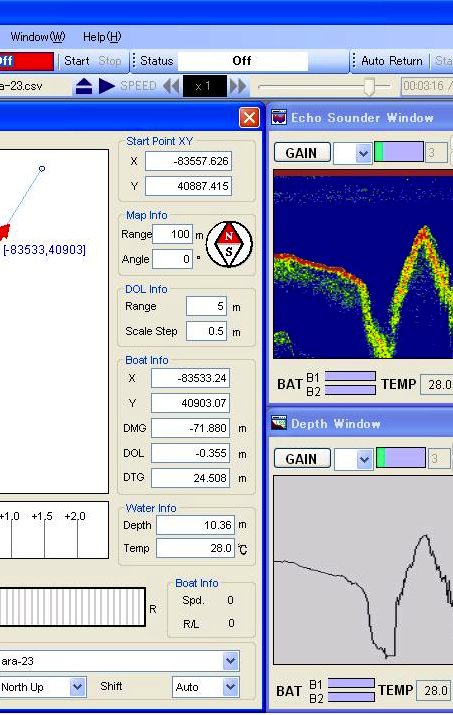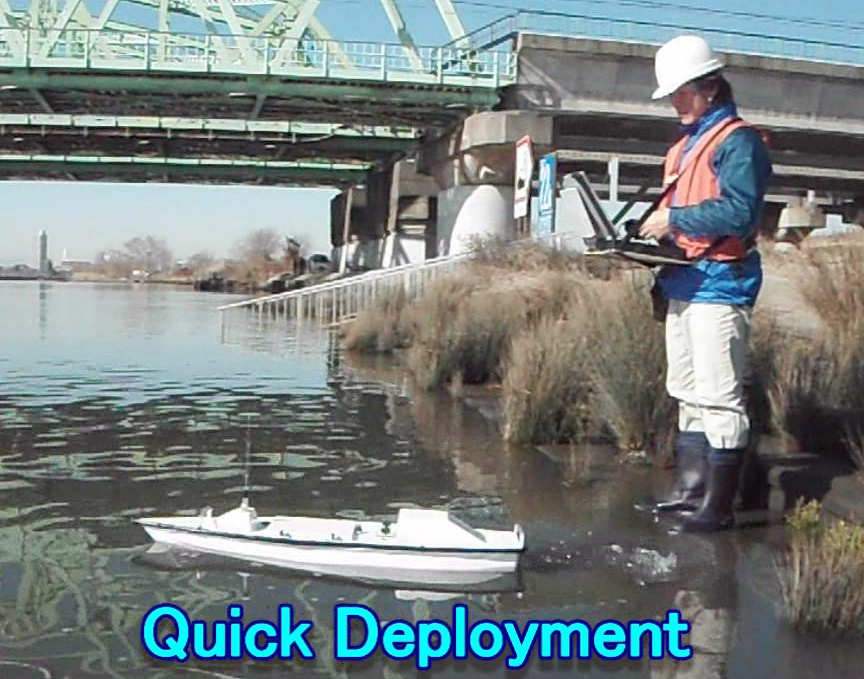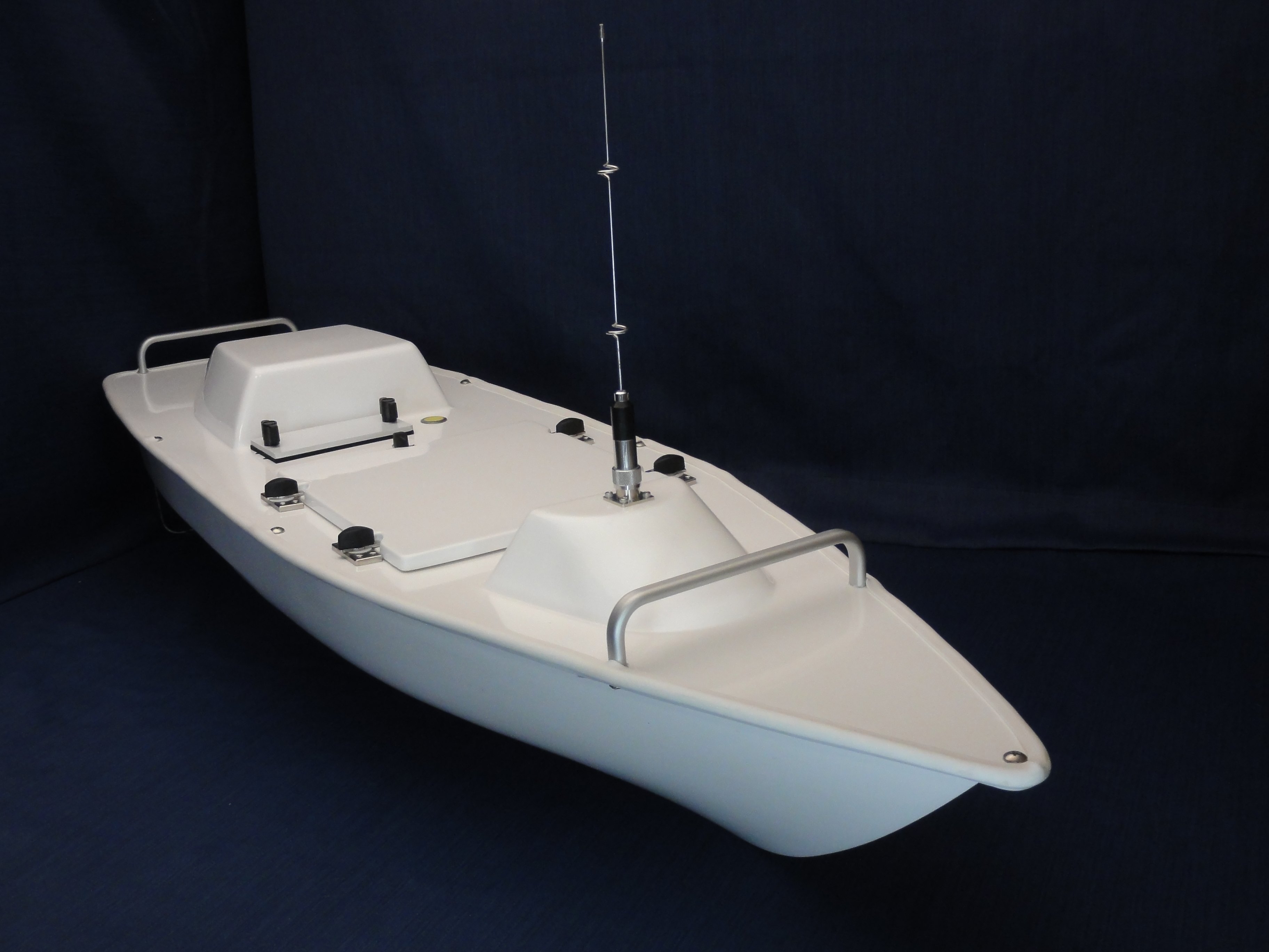The Coden Hydrographic Survey Boat is a remote control platform designed for quick deployment and use in shallow waters and hard to reach areas.  The small size allows for a one man operation which can reduce time and costs of versus deploying regular crews in larger full size boats.  Man hours can be greatly reduced and also no more time spent hitching up larger boats and needing docks to land at the target sites.